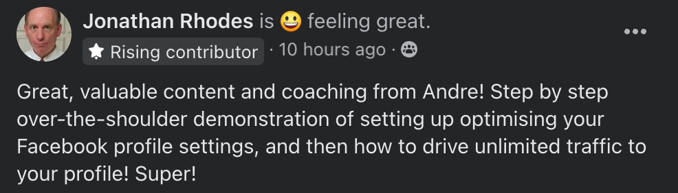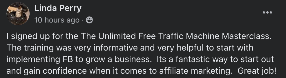 It turns a simple Facebook profile into a traffic tap for my affiliate marketing business.